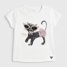Questa adorabile t-shirt bianca è un vero colpo di fulmine per le piccole amanti degli animali! Caratterizzata da un grazioso disegno di un gattino elegante con occhiali da sole e una gonna in tulle, porterà un sorriso sul volto della tua piccola. Realizzata in morbido cotone, è super comoda per il gioco e le avventure quotidiane. Le maniche corte la rendono perfetta per le calde giornate estive. Anche se usata, si presenta in ottime condizioni, pronta per essere sfoggiata! Un capo divertente e stiloso per qualsiasi momento di svago!