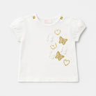 Questa dolcissima t-shirt bianca è un vero colpo di fulmine per le piccole sognatrici! Realizzata in cotone morbido, offre comfort e freschezza in ogni occasione. Decorata con delicate farfalle dorate e graziosi cuoricini, aggiunge un tocco di magia al look. Le maniche corte e il design semplice la rendono perfetta per giochi e avventure estive, senza dimenticare lo stile! Anche se è un capo usato, si presenta in ottime condizioni, pronta ad essere indossata per momenti speciali o giornate spensierate. Un must-have da aggiungere al guardaroba delle piccole!