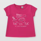 Questa adorabile t-shirt fucsia è un sogno per i piccoli amanti del volo! Realizzata in morbido cotone, presenta un divertente design con un elicottero e una scritta playfull “FLY OVER THE RAINBOW”. Le maniche corte e il taglio leggero la rendono perfetta per le avventure estive e i giochi all'aperto. Nonostante sia un capo usato, è in ottime condizioni, pronta a portare colore e allegria nel guardaroba della tua bambina. Un must-have per ogni piccola esploratrice!