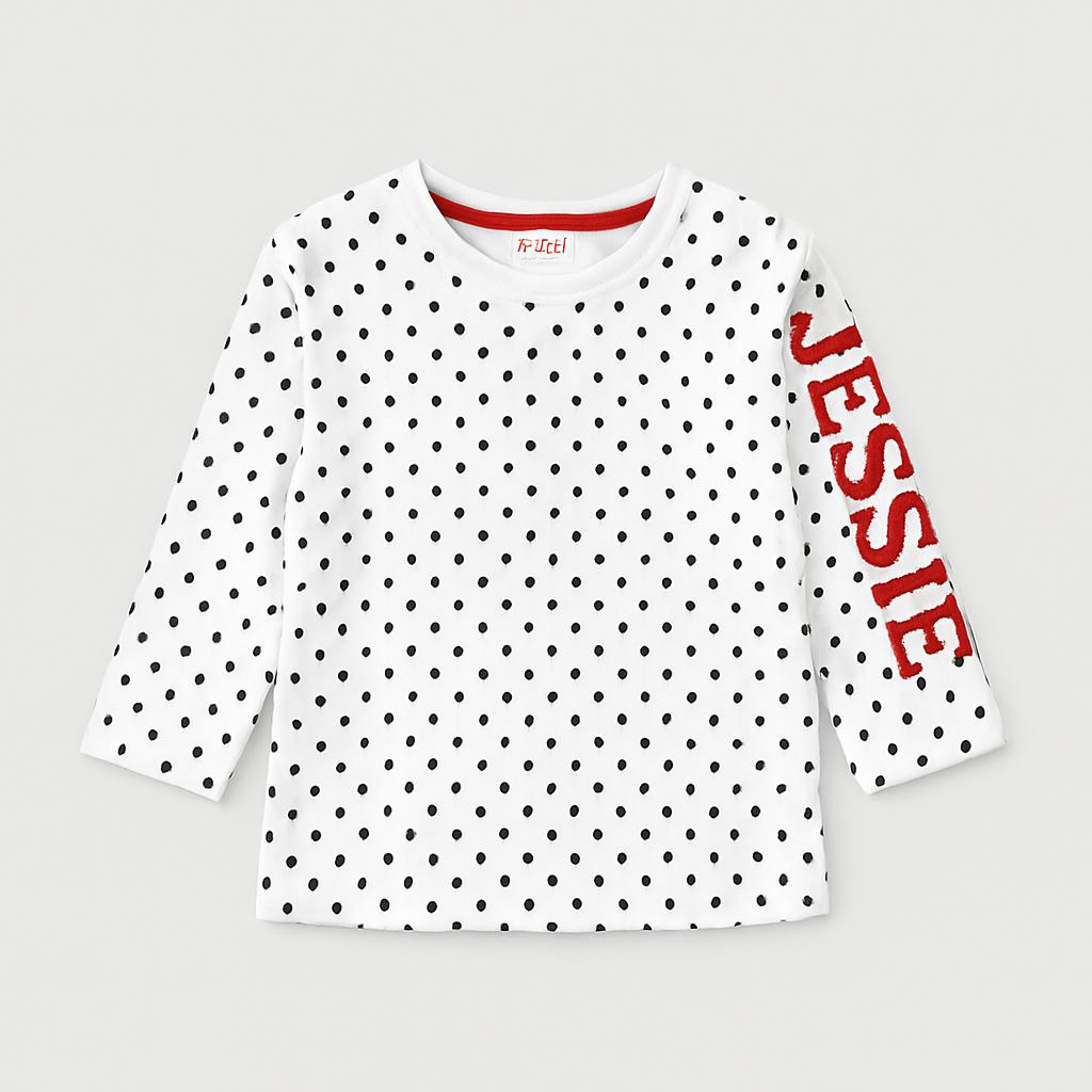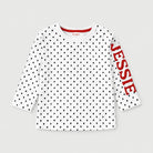 Questa simpatica maglietta a maniche lunghe è un vero colpo di classe per il guardaroba dei piccoli! Realizzata in morbido cotone bianco, è arricchita da deliziosi pois neri che la rendono vivace e giocosa. Un tocco di stile è dato dalla scritta “LOVE” in rosso su una manica, perfetta per esprimere allegria e affetto. Le maniche lunghe offrono comfort e calore nei giorni freschi, rendendola ideale per la scuola o il tempo libero. Nonostante sia un capo usato, si presenta in ottime condizioni e pronto a diventare il nuovo preferito della tua piccola!