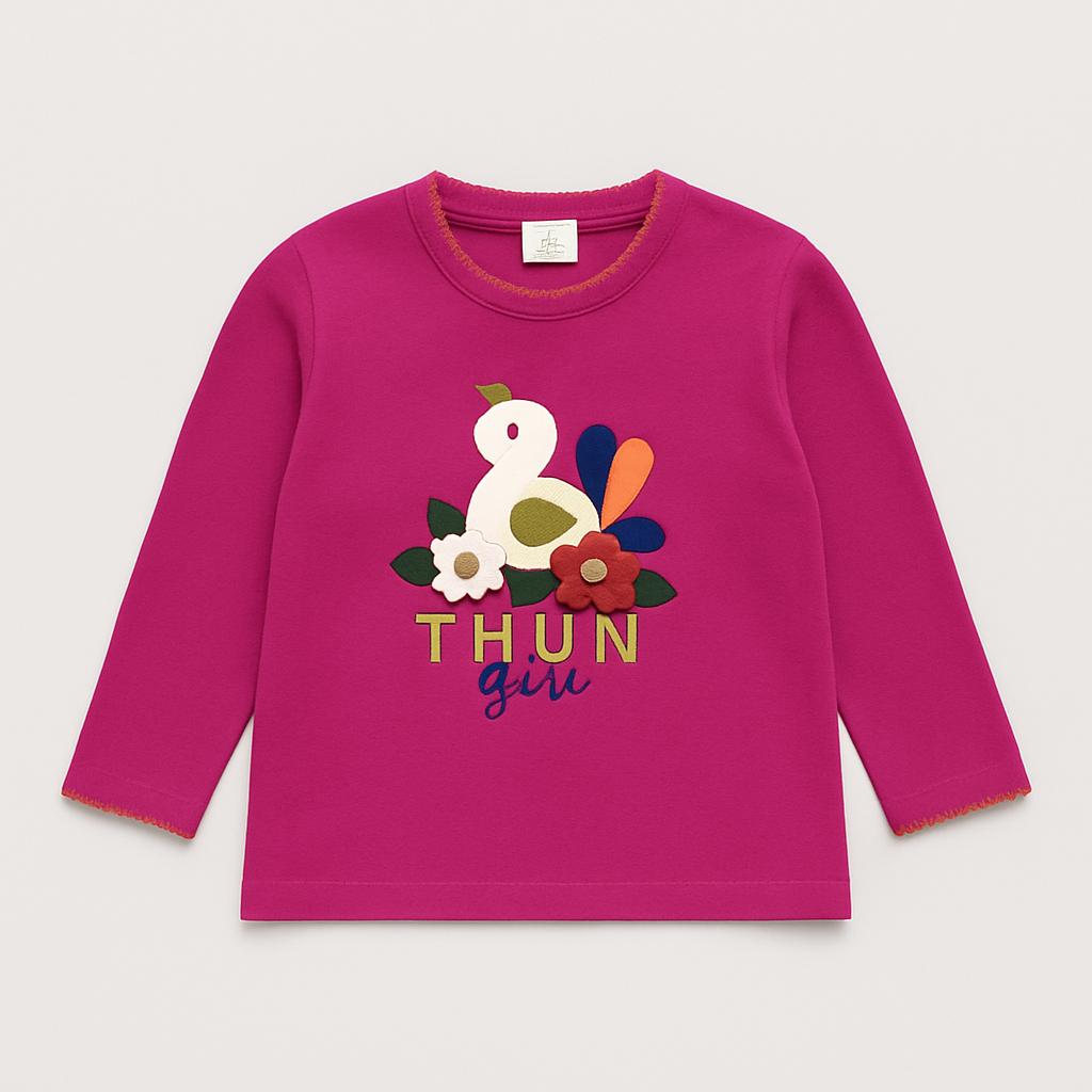 Questa dolce maglietta fucsia bimba di THUN è un vero incanto! Realizzata in un caldo e morbido tessuto, presenta un adorabile design sul davanti con un simpatico orsetto e fiori colorati, perfetto per le piccole sognatrici. Le maniche lunghe e il colletto elegante la rendono ideale per le fresche giornate invernali. Nonostante sia un capo usato, si presenta in ottime condizioni, pronto a donare un tocco di allegria e stile al guardaroba della tua piccola! Un'appassionante aggiunta per piccole perfezioniste!