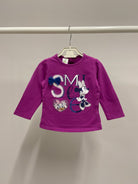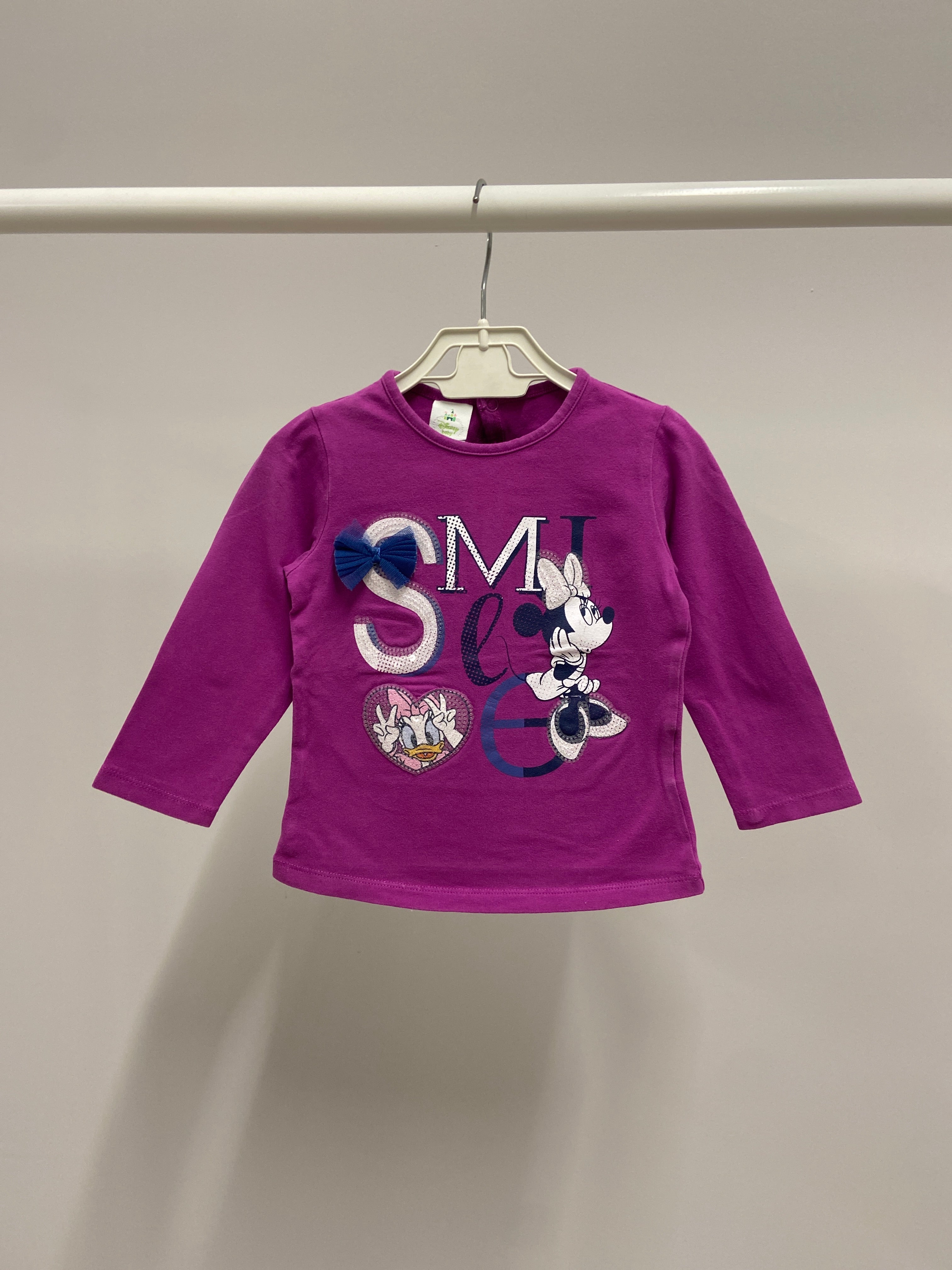 Questa adorabile maglietta lunga di Minnie Mouse è perfetta per le piccole amanti dei personaggi Disney! Realizzata in un morbido cotone, si presenta in un vivace color viola che cattura l'attenzione. Sul fronte, la simpatica Minnie è accompagnata da un elegante fiocco e dettagli luccicanti, rendendo questo capo giocoso e accattivante. Le maniche lunghe la rendono ideale per le giornate fresche, mentre il taglio comodo assicura libertà di movimento. Nonostante sia un capo usato, si trova in ottime condizioni, pronto a conquistare il cuore della tua piccola! Un must-have per un look divertente e alla moda!