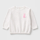 Questa adorabile maglietta a maniche lunghe è perfetta per le piccole sognatrici! Realizzata in un morbido cotone, presenta un delicato motivo a pois rosa su uno sfondo bianco e un dolce coniglietto ricamato sul petto. Il taglio leggermente svasato e l’orlo elastico la rendono comoda e pratica per le giornate di gioco. Nonostante sia un capo usato, è in ottime condizioni e pronta a vestire le avventure quotidiane con stile e dolcezza. Un must-have per il guardaroba delle piccole fashioniste!