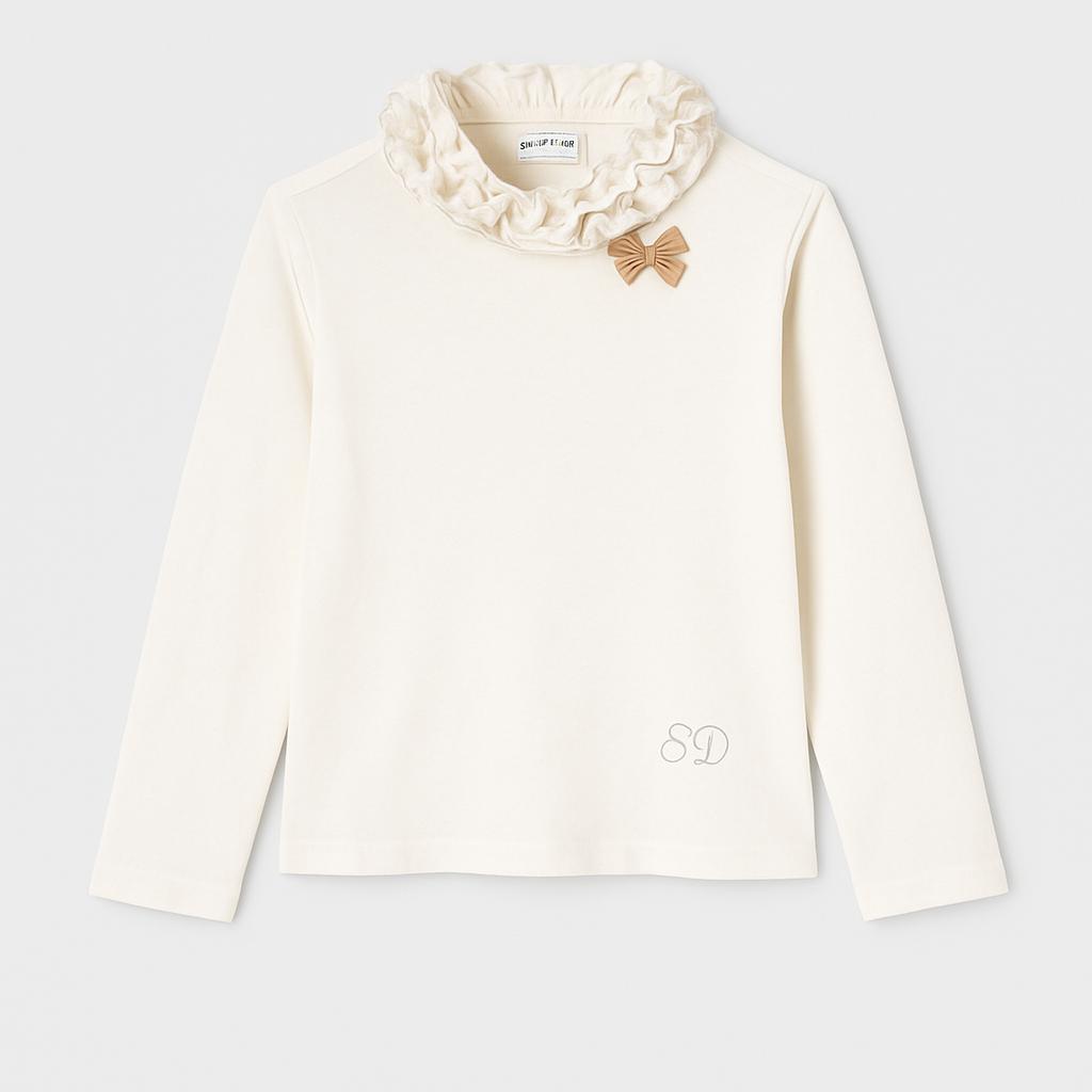 Questa dolce maglietta bianca è un vero gioiello per il guardaroba della tua bambina! Con un raffinato colletto volant che aggiunge un tocco di eleganza, è perfetta per ogni occasione. Realizzata in morbido cotone, promette comfort e comodità per una giornata di giochi e avventure. Sul fronte, il delicato logo ricamato "GD" conferisce un tocco personale e alla moda. Le maniche lunghe la rendono ideale per le fresche giornate. Anche se è un capo usato, si presenta in ottime condizioni, pronta a far brillare il sorriso della tua piccola!