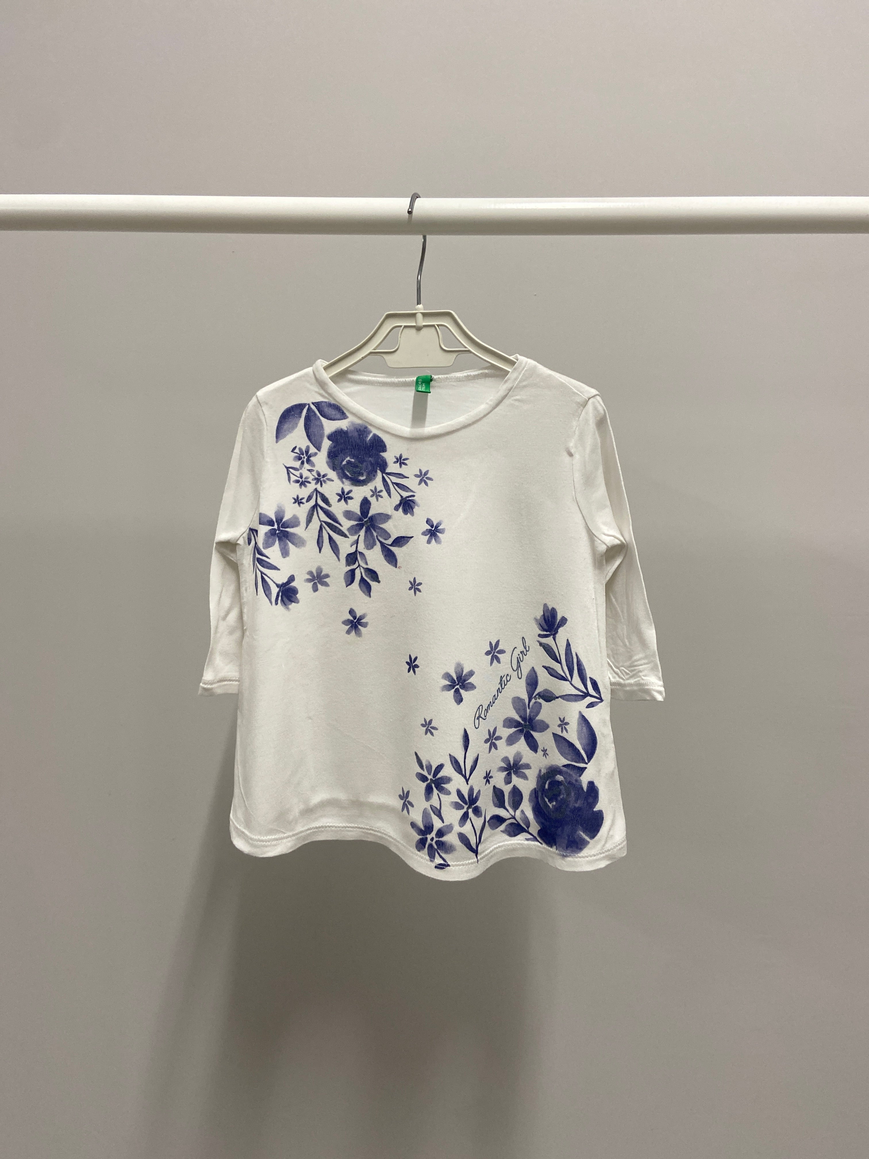 Questa adorabile maglietta a maniche lunghe è perfetta per le piccole sognatrici! Realizzata in morbido cotone bianco, presenta una deliziosa stampa floreale in delicate tonalità di blu che dona un tocco di eleganza e freschezza. Il suo taglio a trapezio offre comfort e libertà di movimento, rendendola ideale per le avventure quotidiane e le giornate più fresche. Anche se è un capo usato, si trova in ottime condizioni e farà sicuramente sorridere ogni bimba che la indosserà! Un’ottima scelta per un look casual e chic!