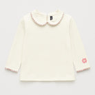 Questa dolcissima maglietta a maniche lunghe è un vero tesoro per il guardaroba delle piccole! Realizzata in morbido cotone bianco, presenta un elegante colletto a ricciolo e dettagli floreali sui polsini che aggiungono un tocco romantico. Con una vestibilità comoda, è perfetta per le giornate fresche, ma anche per le occasioni speciali. Nonostante sia un capo usato, si presenta in ottime condizioni e pronta per nuove avventure. Un must-have per tutte le piccole fashioniste!