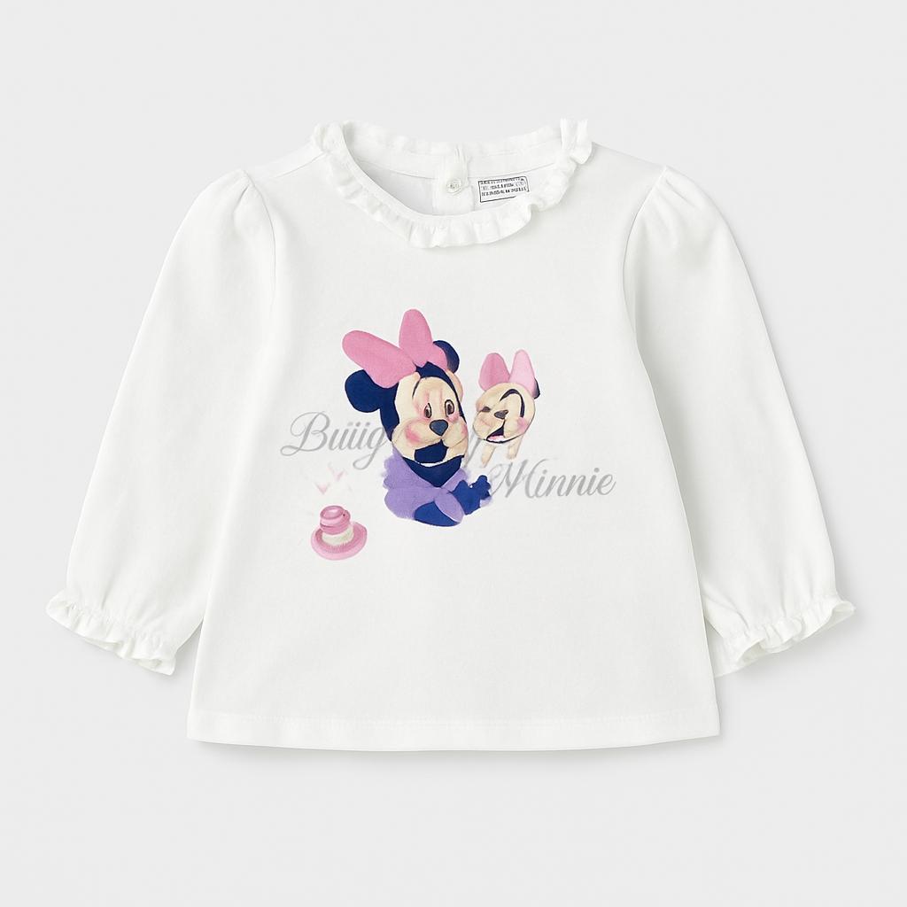 Questa dolcissima maglietta bianca con maniche lunghe è perfetta per le piccole fan di Minnie! Realizzata in un morbido cotone, presenta un adorabile stampa di Minnie e il suo inseparabile amico. Il colletto arricciato e i polsini con un delicato ruché aggiungono un tocco di eleganza e femminilità. Nonostante sia un capo usato, si trova in ottime condizioni, pronto per accompagnare ogni gioco e avventura! Ideale per outfit casual o occasioni speciali, questa maglietta sarà un'aggiunta amata al guardaroba della tua bambina!
