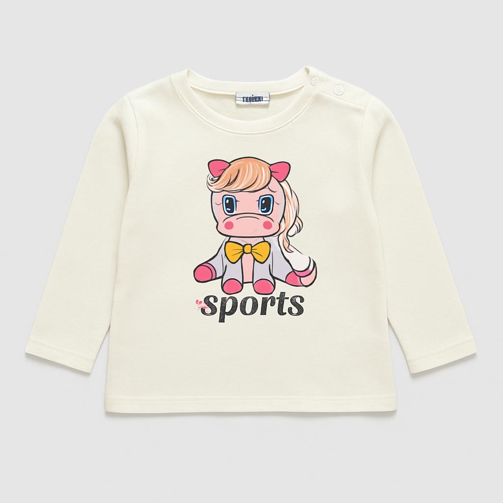 Questa dolcissima maglietta a maniche lunghe è un vero tesoro per il guardaroba dei più piccoli! Realizzata in morbido cotone bianco, presenta un adorabile design che ritrae una simpaticissima bambina sportiva, perfetta per incoraggiare l'amore per l'attività fisica. I colori tenui e i dettagli vivaci rendono questo capo unico e giocoso.