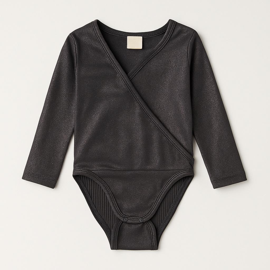 Questo incantevole body shimmer è un vero divertimento nel guardaroba delle piccole! Realizzato in un tessuto morbido e scintillante, il suo elegante colore nero è arricchito da un tocco di lucentezza, perfetto per ogni occasione. Le maniche lunghe e il design avvolgente lo rendono ideale per le serate danzanti o per un look raffinato. Facile da indossare grazie alla chiusura inferiore a bottoni, questo capo usato è in ottime condizioni e promette di far brillare qualsiasi outfit. Un must-have per le piccole stelle!