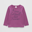Questa deliziosa maglietta a maniche lunghe di colore viola è perfetta per le piccole sognatrici! Con la scritta "A true love will last forever" in elegante carattere, comunica un messaggio dolce e affettuoso. Realizzata in morbido cotone, garantisce comfort e calore durante le fresche giornate. Ideale per essere abbinata a jeans o leggings, questa maglietta usata si presenta in buone condizioni e promette di diventare un favorito nel guardaroba della tua bimba. Un capo versatile e alla moda che conquista il cuore!
