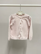 Questo delizioso cardigan rosa pallido è l'aggiunta perfetta al guardaroba della tua piccola! Realizzato in un morbido tessuto, offre comfort e calore per le fresche giornate primaverili. Con una delicata chiusura a bottoni e maniche lunghe, è ideale per essere abbinato a vestiti, t-shirt o jeans.