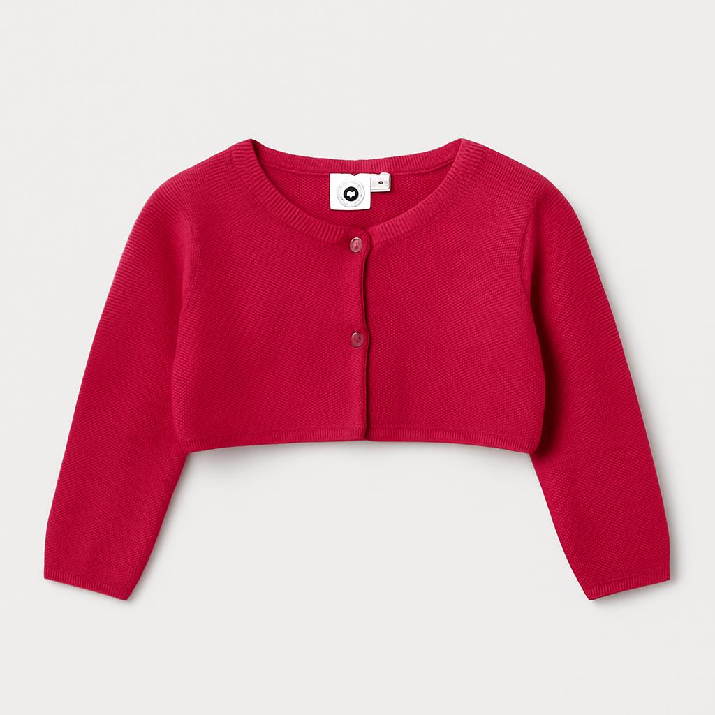 Questo adorabile cardigan rosso acceso è un'aggiunta che scalderà il cuore e il guardaroba della tua piccola! Realizzato in un tessuto morbido, offre comfort e stile in ogni occasione. Con le sue maniche a 3/4 e il taglio cropped, è perfetto da indossare sopra una maglietta o un vestito, aggiungendo un tocco di vivacità al look. I bottoni frontali facilitano la chiusura, rendendolo pratico e facile da indossare. Nonostante sia un capo usato, si presenta in ottime condizioni. Questo cardigan è un must per le piccole fashioniste pronte a esprimere il loro stile unico!