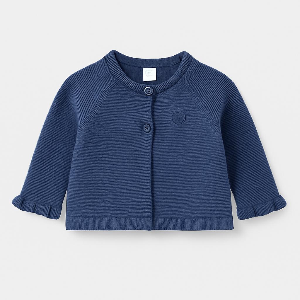 Questo adorabile cardigan azzurro è perfetto per aggiungere un tocco di dolcezza al guardaroba del tuo piccolo! Realizzato in un morbido tessuto a maglia, presenta un delicato ricamo a forma di cuore che rende questo capo ancora più speciale. Le maniche raglan e le piccole balze sui polsini conferiscono un'aria giocosa e trendy, ideale per ogni occasione, dalla scuola ai momenti di svago. Anche se usato, il cardigan è in ottime condizioni e pronto per accompagnare la tua bimba in tante avventure! Il taglio comodo e il colore versatile lo rendono un must-have per ogni stagione.