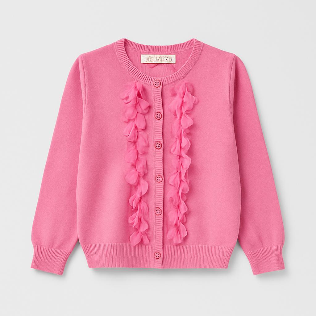 Questo cardigan rosa in morbido cotone è un'aggiunta adorabile al guardaroba della tua bambina! Con la sua tonalità vivace e i delicati fiori decorativi lungo la chiusura, questo capo combina dolcezza e stile. Le maniche lunghe e il taglio comodo lo rendono perfetto per le fresche serate primaverili o come sovrapposizione invernale. Nonostante sia usato, si presenta in ottime condizioni e sarà un pezzo amato per qualsiasi occasione, dall’asilo ai pomeriggi di gioco. Un must-have per le piccole trendsetter!