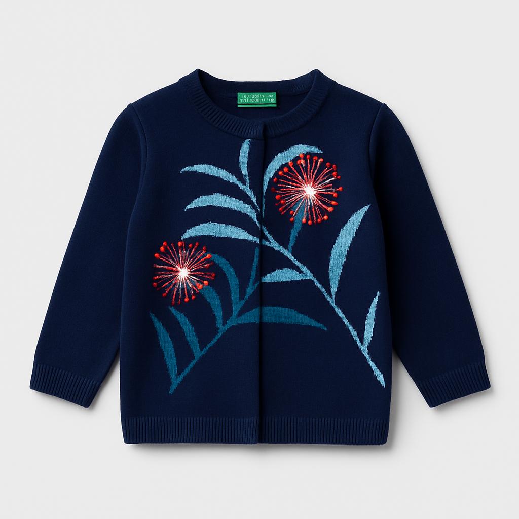 Questo delizioso cardigan blu navy è il capo perfetto per le piccole amanti della natura! Realizzato in morbido cotone, offre calore e comfort durante le fresche giornate. La graziosa decorazione floreale sul davanti, con fiori rossi e foglie verdi, porta un tocco di freschezza e allegria. Con un pratico design a zip, è facile da indossare e togliere, rendendolo ideale per qualsiasi occasione, dalle passeggiate nel parco ai giochi con gli amici. Anche se è un capo usato, si presenta in ottime condizioni, pronto per riportare colore e stile nel guardaroba della tua piccola!