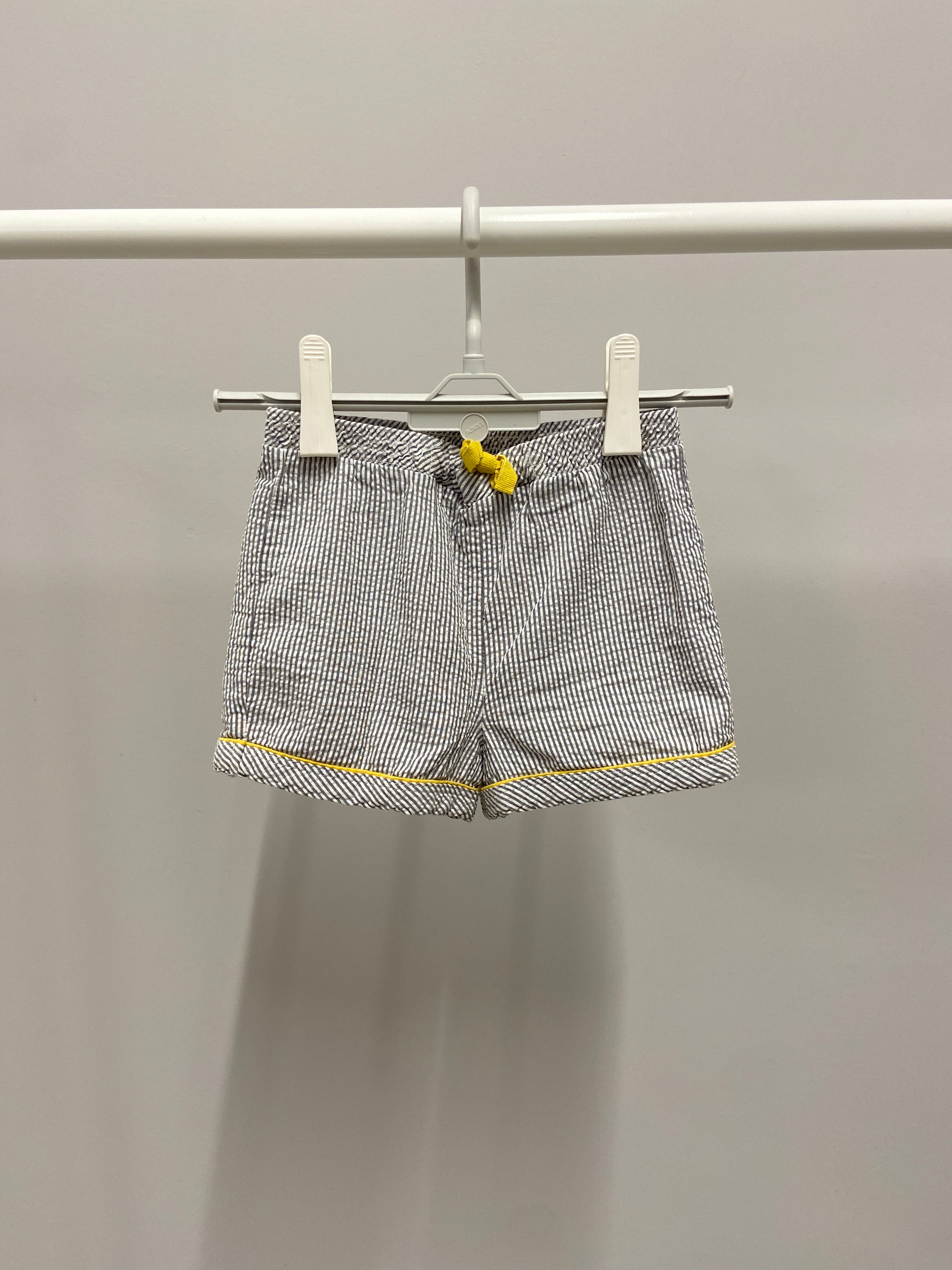 Questi adorabili pantaloni shorts a righe sono il complemento perfetto per il look estivo dei vostri piccoli! Realizzati in una morbida e leggera stoffa, offrono comfort e freschezza nei giorni più caldi. Le righe bianche e nere creano un contrasto chic, mentre il dettaglio del bordo giallo aggiunge un tocco di vivacità e stile. La vita elastica con coulisse pratica garantisce una vestibilità comoda e sicura, ideale per ogni avventura all'aria aperta. Nonostante siano pre-amati, sono in ottime condizioni e pronti a far brillare il guardaroba delle piccole fashioniste!
