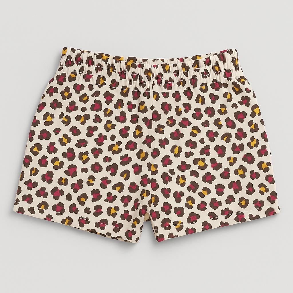 Questi adorabili pantaloncini in stile safari sono un'aggiunta vivace e divertente al guardaroba della tua piccola! Realizzati in un morbido cotone, presentano un simpatico motivo leopardato nei toni del beige, rosa e giallo, perfetto per esprimere la personalità avventurosa della tua bambina.