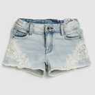 Questi adorabili shorts di jeans sono il perfetto alleato per le calde giornate estive! Realizzati in morbido denim chiaro, presentano un delizioso ricamo in pizzo che li rende unici e alla moda. Il taglio corto e l'orlo sfilacciato donano un tocco trendy, mentre la vita regolabile assicura una vestibilità comoda per le piccole avventuriere. Nonostante siano usati, si trovano in ottime condizioni e sono pronti per essere indossati in ogni occasione, dai giochi al parco a una passeggiata in famiglia! Un capo indispensabile per un look fresco e divertente!