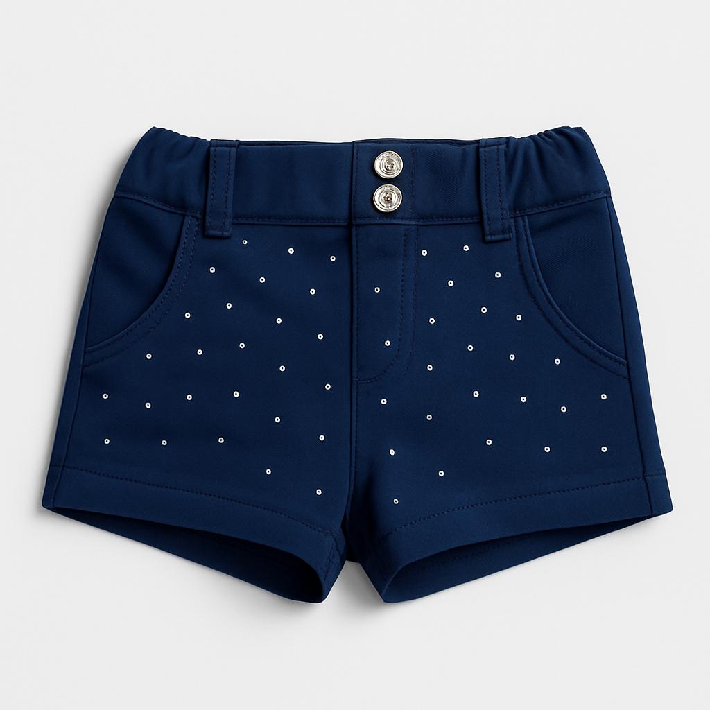 Questi adorabili pantaloni corti blu scuro sono perfetti per le piccole star del sole! Con una fascia elastica in vita e un taglio comodo, offrono libertà di movimento per ogni avventura estiva. Decorati con graziosi strass che brillano come piccole stelle, aggiungono un tocco di eleganza a un look casual. Le tasche anteriori rendono questi short ancora più pratici per portare con sé piccoli tesori. Nonostante siano usati, sono in ottime condizioni e pronti a diventare il capo preferito della tua bimba! Un must-have per l'estate!