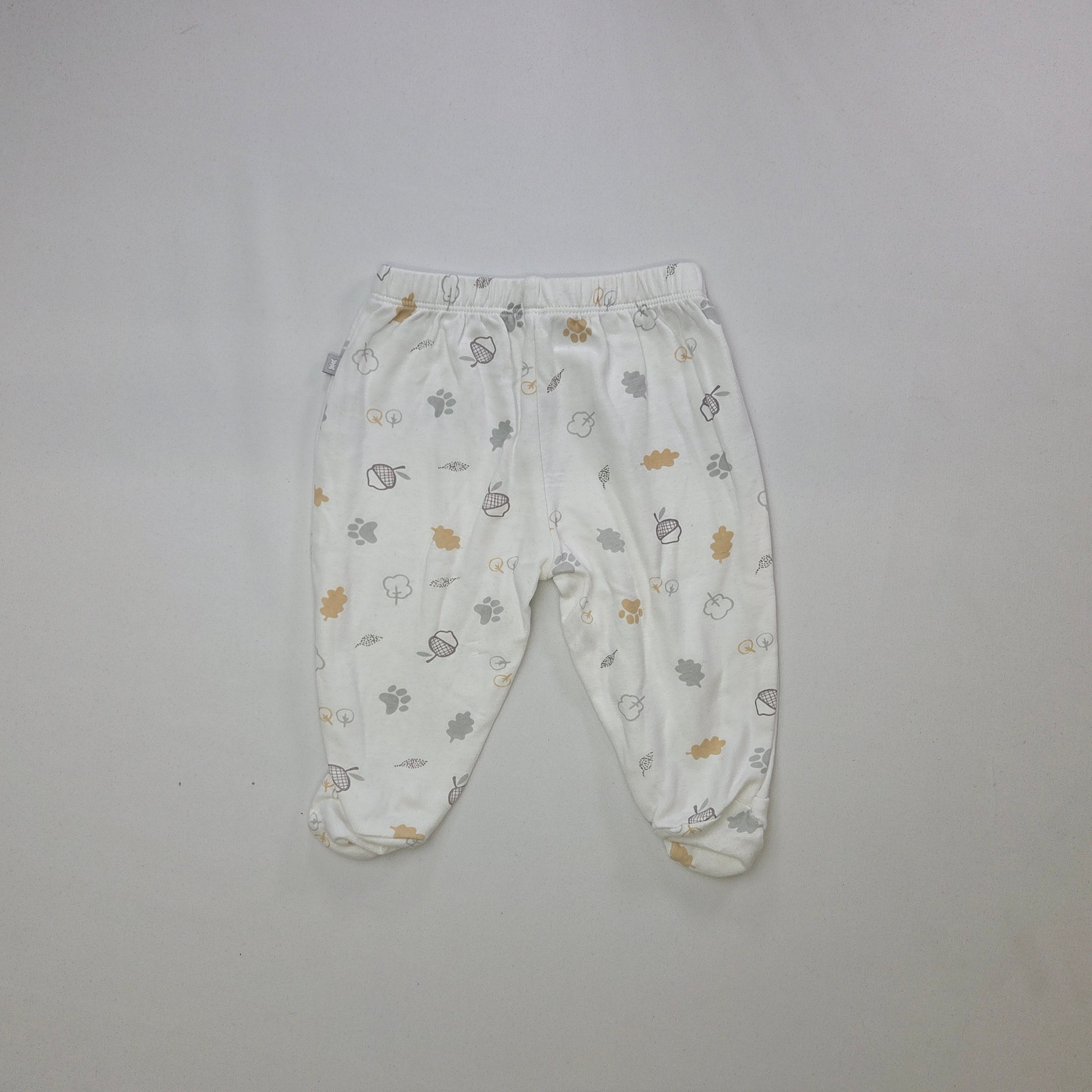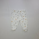 Questi adorabili pantaloni per neonati sono un vero e proprio abbraccio di morbidezza! Realizzati in un tessuto cotone bianco, presentano un grazioso motivo a stampa con piccoli disegni di nuvole e impronte, in delicate tonalità di grigio e giallo. La vita elasticizzata assicura una vestibilità comoda, ideale per i piccoli che amano muoversi liberamente. Con piedi chiusi per un calore extra, sono perfetti per le giornate di gioco o per un pisolino sereno. Nonostante siano usati, sono in ottime condizioni e pronti a diventare il capo preferito del tuo bimbo! Un must-have per ogni guardaroba!