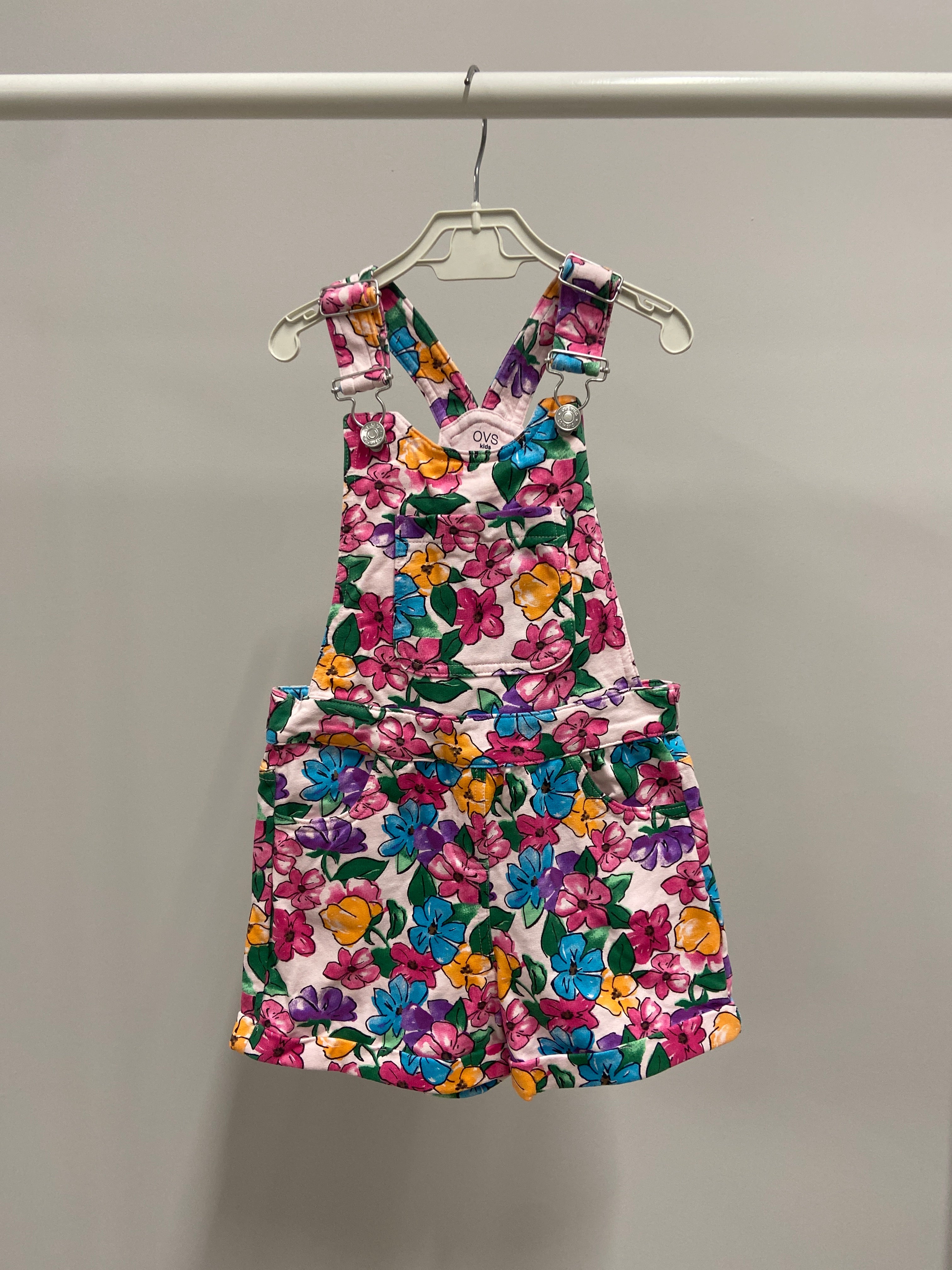 Questi adorabili salopette a shorts in cotone, firmate OVS, saranno un tripudio di colori nel guardaroba della tua bimba! Caratterizzate da un vivace motivo floreale che riempie d’allegria, sono perfette per le giornate estive. Le spalline regolabili e le tasche frontali aggiungono funzionalità al design girly e spensierato. Nonostante siano usate, si presentano in ottime condizioni, pronte per accompagnare ogni avventura all'aria aperta. Un capo trendy e divertente, ideale per piccole sognatrici!