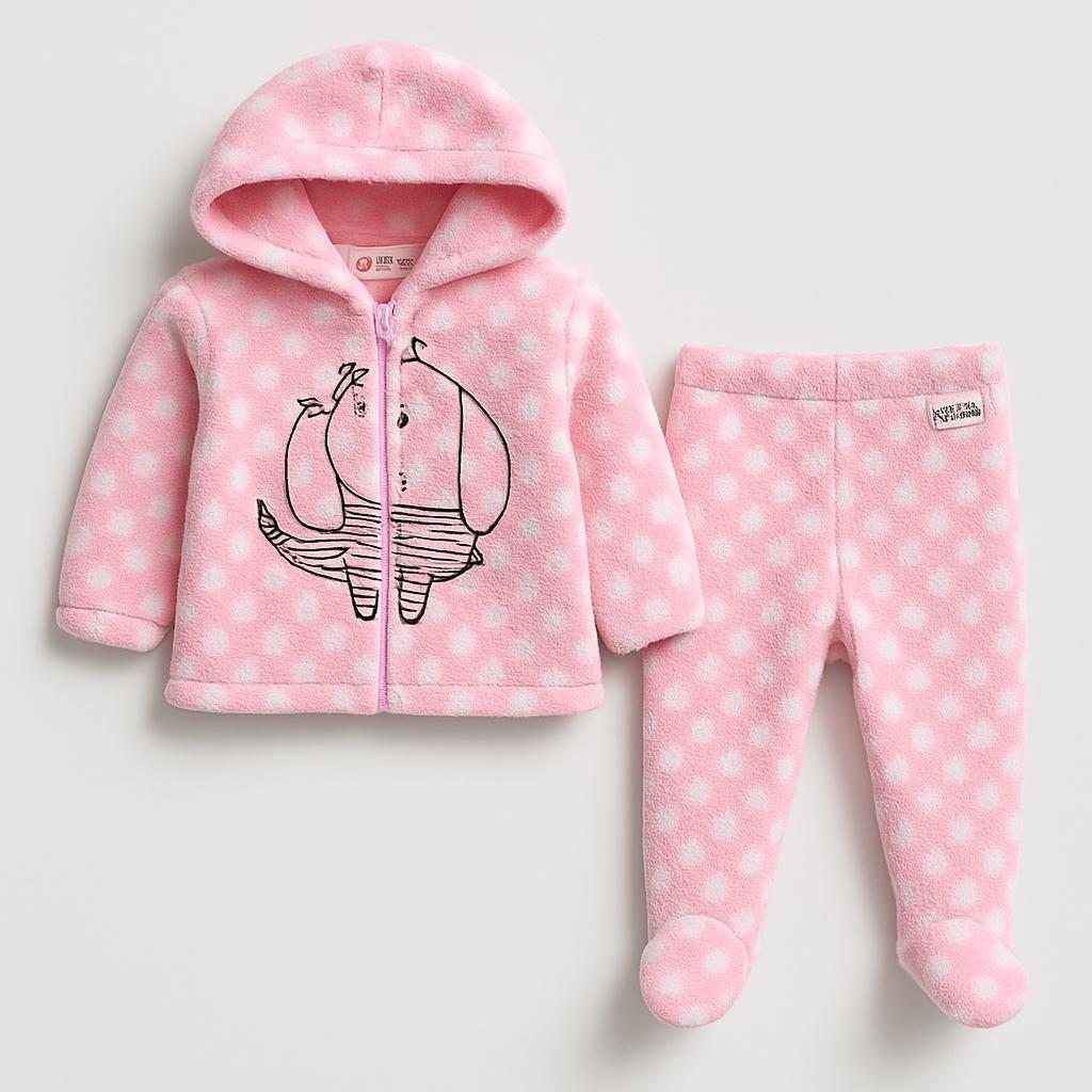 Questo tenero completino in morbido pile è perfetto per mantenere al calduccio i più piccoli nelle giornate fredde! Il dolce vestitino presenta un grazioso design in rosa con adorabili pois bianchi e una simpaticissima applicazione di un elefantino sul davanti. La giacca con zip facilita l'indossamento e offre comfort, mentre i pantaloni a impegno con piedini garantiscono un calore extra. Questo set, usato ma in ottime condizioni, è ideale per momenti di gioco o per coccolarsi a casa! Un capo che unisce comfort e dolcezza, perfetto per le dolci avventure quotidiane!