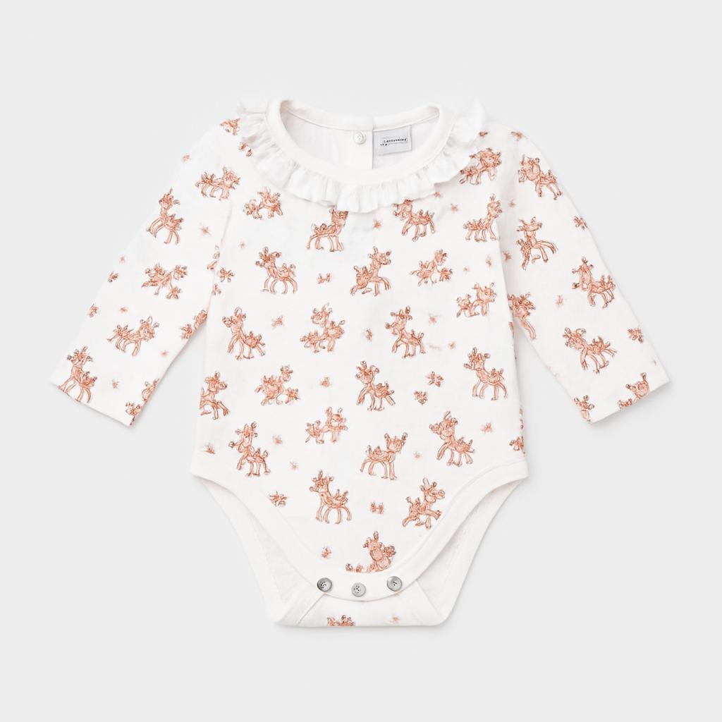 Questo adorabile body a manica lunga è perfetto per le piccole principesse! Realizzato in morbido cotone, offre comfort e calore. Il delicato motivo floreale su sfondo bianco trasmette dolcezza e vivacità. Il colletto arricciato aggiunge un tocco chic, mentre le pratiche aperture sottostanti facilitano il cambio. Nonostante sia usato, si presenta in ottime condizioni, pronto a far brillare il guardaroba della tua bimba. Un capo essenziale per chi ama lo stile senza rinunciare alla comodità!