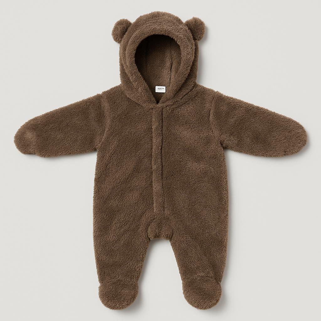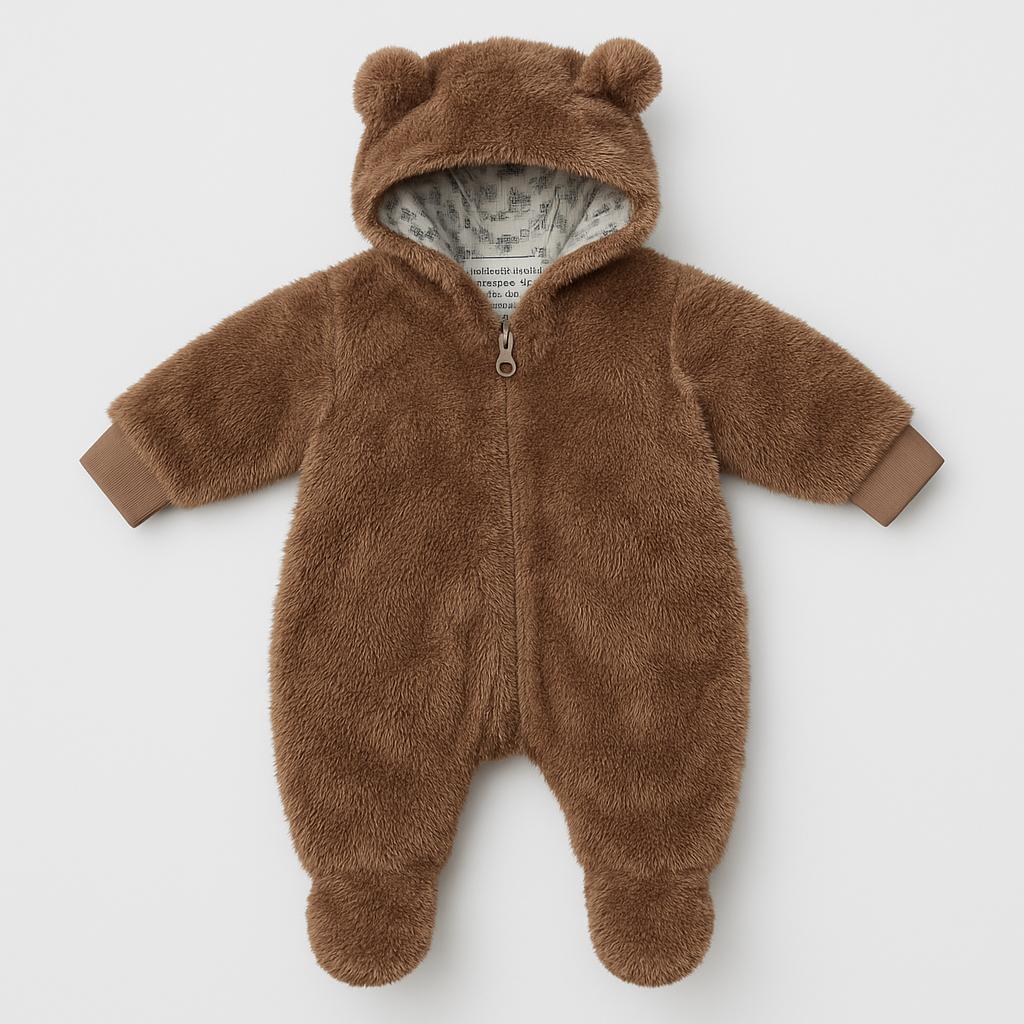 Avvolgi il tuo piccolo in un abbraccio di morbidezza con questa adorabile tuta orsetto! Realizzata in un soffice tessuto peloso color marrone caldo, la giacca presenta una comoda chiusura a zip e un cappuccio dotato di orecchie da orsetto che faranno sciogliere i cuori. Le maniche e i piedi integrati offrono una calda protezione, perfetti per le avventure all'aperto durante le giornate fredde. Nonostante sia un capo usato, la tuta è in ottime condizioni e pronta a garantire sorrisi e comfort al tuo piccolo esploratore! Un must per i piccini che amano sentirsi coccolati e alla moda!