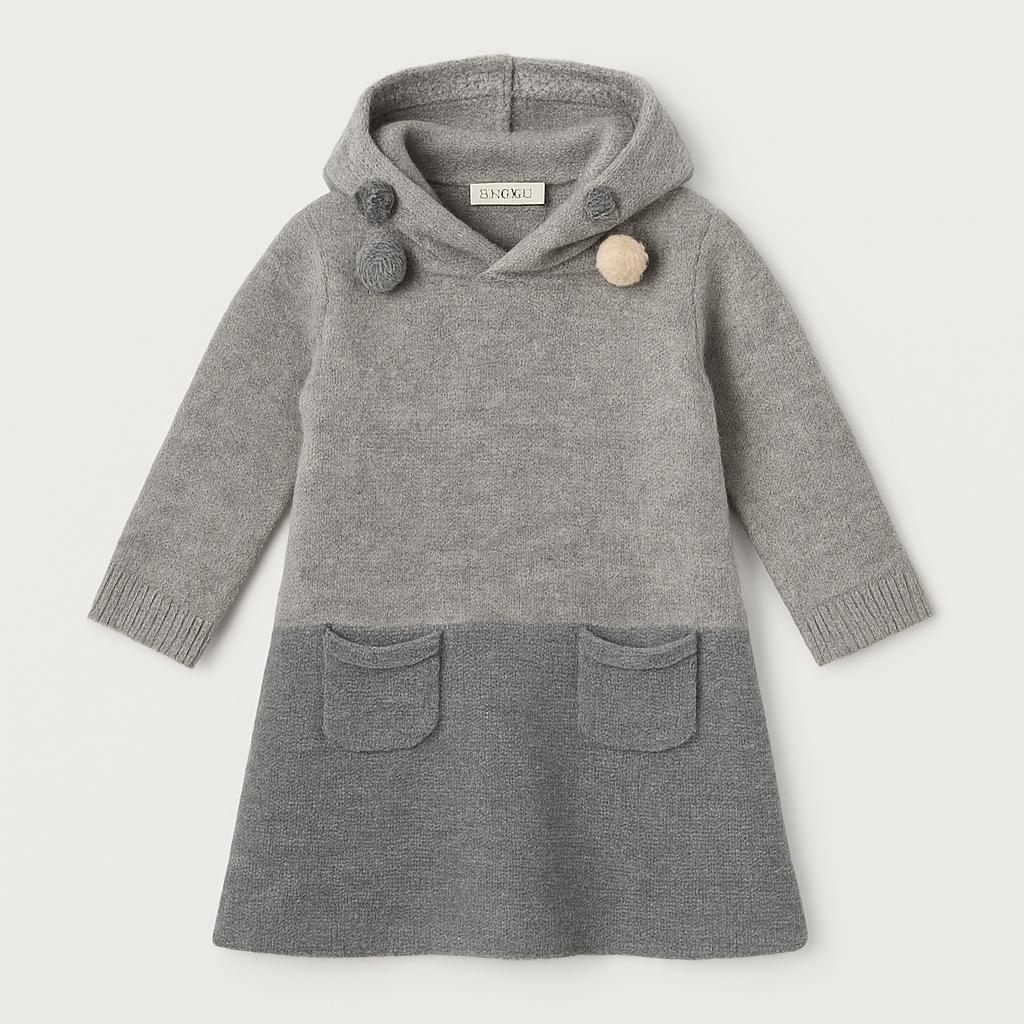 Questo adorabile abitino grigio è il perfetto equilibrio tra comfort e stile! Realizzato in un morbido tessuto, presenta un design accogliente con un cappuccio adorabile e due coccolose pompon. Il taglio a trapezio lo rende comodo e facilita i movimenti, ideale per le piccole esploratrici. Le tasche frontali aggiungono un tocco pratico e giocoso, perfette per riporre piccoli tesori. Anche se usato, si presenta in ottime condizioni, pronto per nuove avventure. Un capo da non perdere per chi ama vestire con eleganza e comodità!