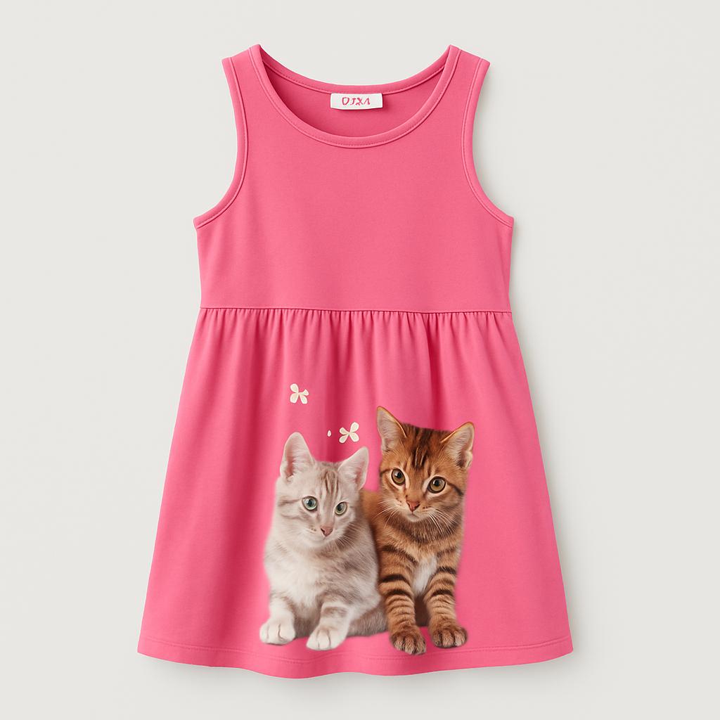 Questo adorabile vestito rosa è perfetto per le piccole amanti degli animali! Realizzato in morbido cotone, offre un comfort eccellente per ogni avventura. La gonna svasata e le spalline larghe creano un look femminile e giocoso. Sul davanti, una dolce stampa di gattini aggiunge un tocco di magia, rendendo ogni giornata speciale. Nonostante sia usato, si presenta in ottime condizioni, pronto a far brillare il sorriso della tua piccola. Ideale per le calde giornate estive o per un pomeriggio di giochi!