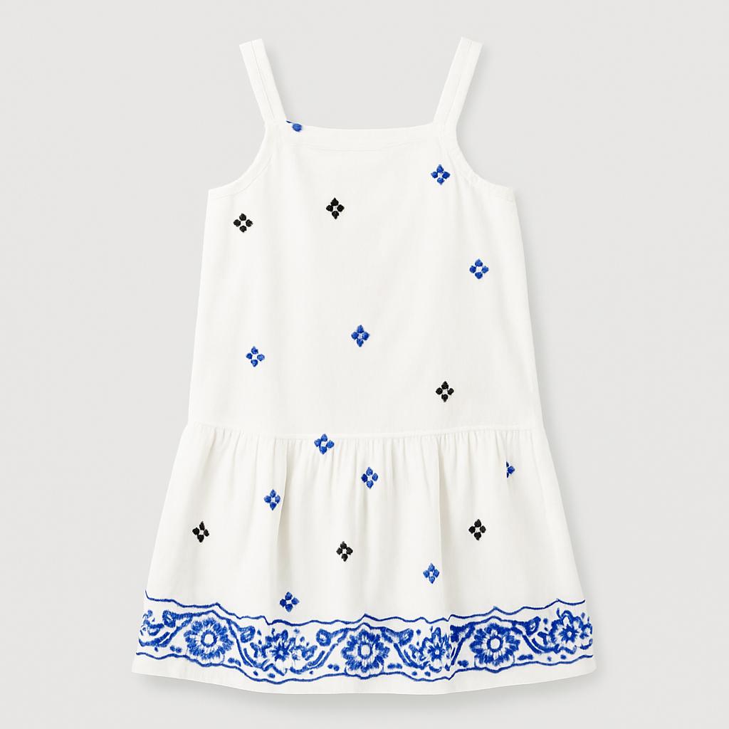 Questo incantevole abito estivo in cotone bianco è un vero e proprio sogno per le piccole! Con spalline sottili e un design fresco, è impreziosito da delicati dettagli ricamati blu e neri che aggiungono un tocco chic. Il girovita è leggermente arricciato e la gonna ampia garantisce libertà di movimento per giocare e divertirsi. Perfetto per le calde giornate estive, questo vestito usato è in ottime condizioni ed è ideale per le occasioni speciali o semplicemente per una passeggiata al parco. Un capo da non perdere per ogni piccola stilista!