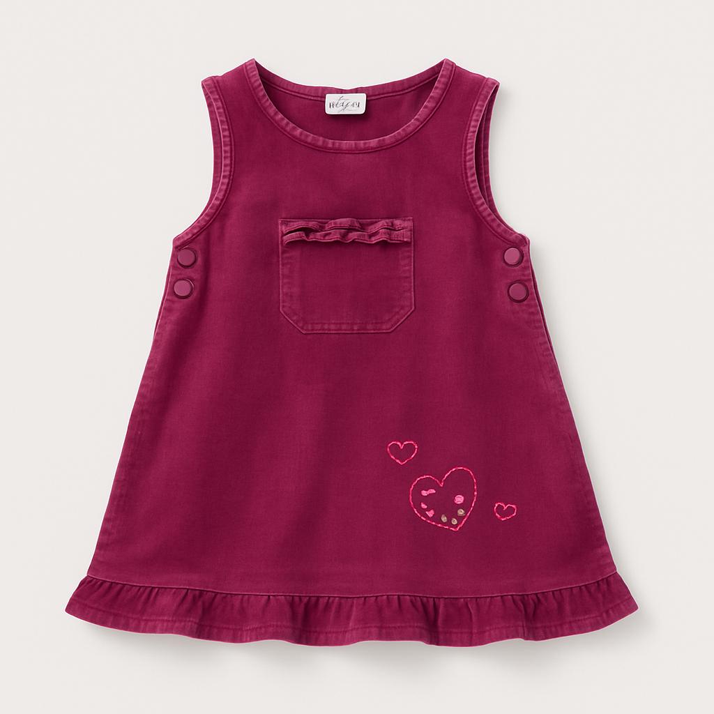 Questo adorabile vestitino in velluto a coste fucsia è un'aggiunta perfetta per il guardaroba della tua piccola! Con un taglio ampio e fresco, è decorato da una delicata rouches sulla scollatura e un grazioso taschino sul petto. Le cuciture in contrasto e il simpatico motivo a cuore sul lato aggiungono un tocco di originalità. Le spalline con bottoni rendono facile indossarlo e toglierlo, rendendolo ideale per ogni occasione, da una passeggiata al parco a una festa con gli amici. Nonostante sia un capo usato, si presenta in ottime condizioni e sarà perfetto per far sentire la tua piccina comoda e alla moda!