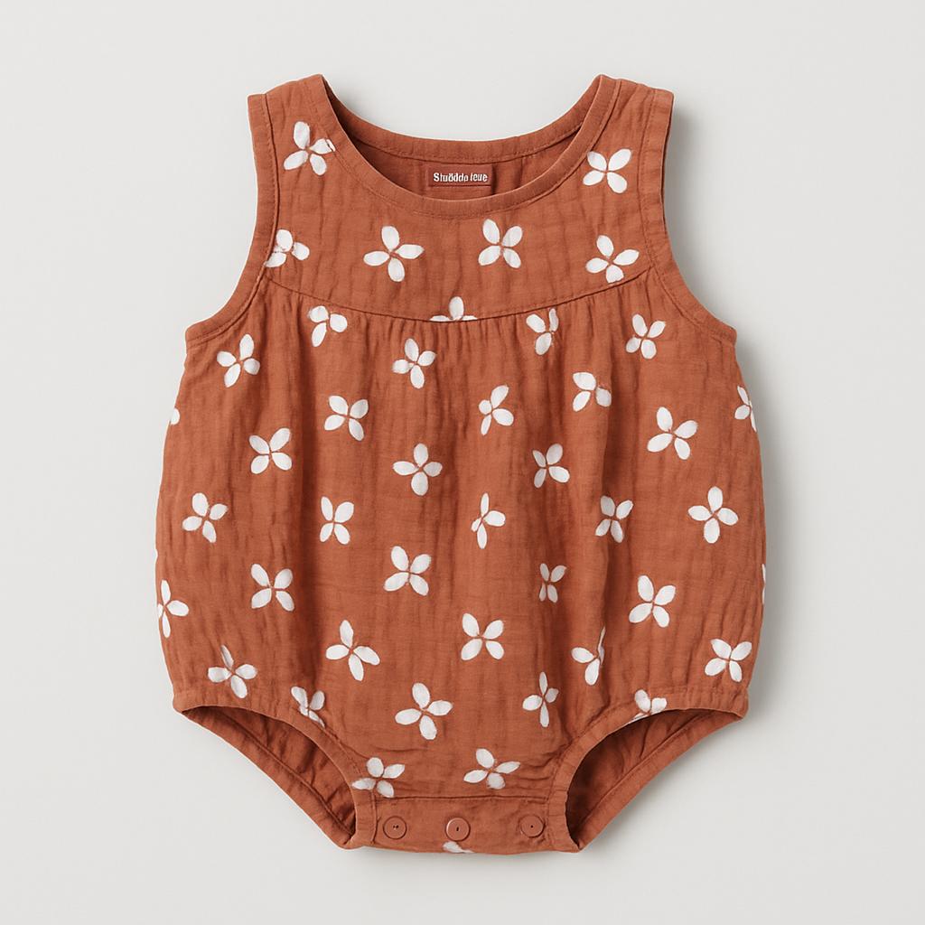 Questo adorabile body estivo floreale è perfetto per le piccole fashioniste! Realizzato in morbidissimo cotone, il suo color terracotta caldo è abbellito da delicate stampe bianche che richiamano la natura. Il design senza maniche lo rende ideale per le giornate deliziose all'aperto, mentre la vestibilità comoda garantisce libertà di movimento durante il gioco. Nonostante sia un capo usato, si presenta in ottime condizioni, pronto per essere indossato da una piccola avventuriera. Un outfit pratico e trendy per un'estate indimenticabile!