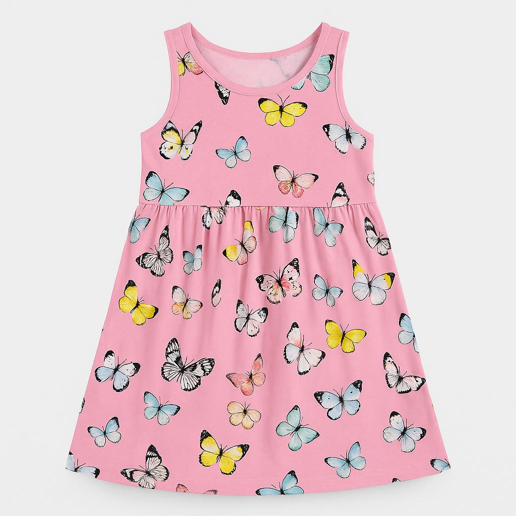 Questo incantevole vestitino rosa con farfalle porterà un tocco di magia nel guardaroba della tua piccola! Realizzato in cotone morbido e leggero, è perfetto per le giornate estive. Le adorabili farfalle colorate danzano su tutto il vestito, rendendolo vivace e gioioso. Il design senza maniche e la vita elasticizzata garantiscono comfort e libertà di movimento, ideali per esplorazioni e giochi. Nonostante sia un capo usato, è in ottime condizioni e pronto per accompagnare la tua bimba in nuove avventure! Un must-have per le piccole sognatrici!