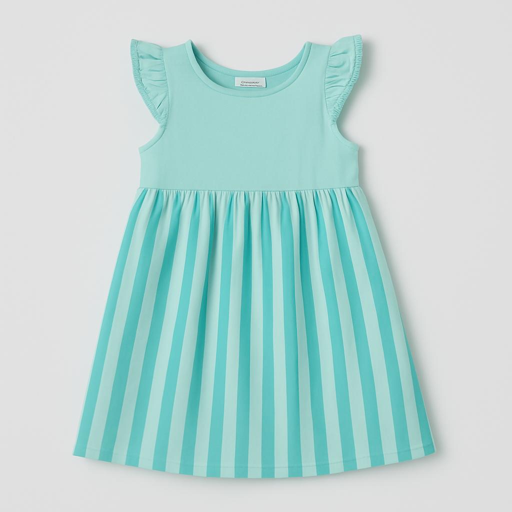 Questo adorabile vestitino in tonalità turchese renderà il guardaroba della tua bambina ancora più speciale! Con un design fresco a righe, il corpetto è accompagnato da morbide maniche a volant decorate con scintillanti dettagli. Perfetto per le giornate estive, questo vestito è comodo e leggero, ideale per giochi e avventure all’aperto. Nonostante sia un capo usato, si presenta in ottime condizioni e porterà un sorriso sul volto della tua piccola. Un'aggiunta elegante e giocosa per ogni occasione!