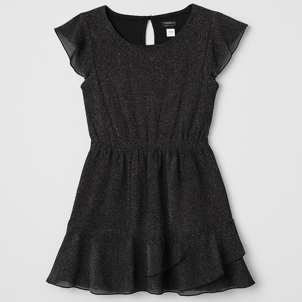 Questo incantevole vestito per bambine è perfetto per ogni occasione speciale! Realizzato in un tessuto scintillante nero, cattura la luce con delicate sfumature brillanti. Le maniche a volant aggiungono un tocco romantico e frizzante, mentre la gonna voluminosa si muove con grazia ad ogni passo. Con un'apertura sulla schiena per facilitarne l'indossamento, è comodo e stiloso. Anche se usato, si presenta in ottime condizioni e sarà un'aggiunta preziosa al guardaroba delle piccole principesse!
