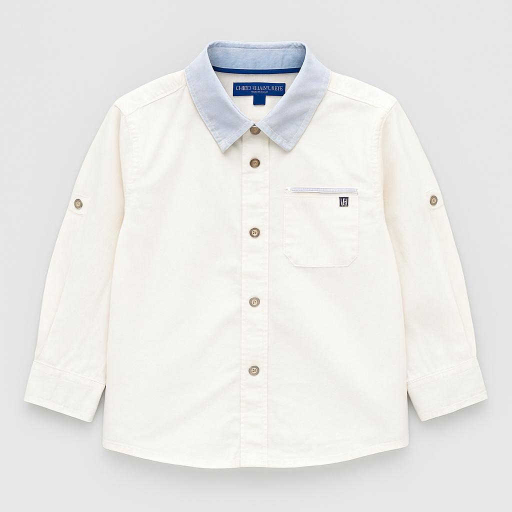 Questa elegante camicia bianca è un vero classico per i piccoli stilisti! Realizzata in cotone leggero e fresco, è perfetta per le occasioni speciali o per un look curato nel quotidiano. Il colletto in denim chiaro aggiunge un tocco di originalità, mentre la piccola taschina sul petto la rende pratico e trendy. Con le sue maniche lunghe e il taglio comodo, è ideale per tutte le stagioni. Nonostante sia un capo usato, si presenta in ottime condizioni e pronto a vestire il tuo bambino con stile e semplicità!