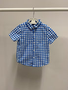 Questo simpatico e fresco shirt in tessuto a quadri blu e bianco è perfetto per i piccoli esploratori! Con il suo colletto classico e la comoda apertura con bottoni, è ideale per ogni occasione estiva. Realizzato in un morbido cotone, garantisce comodità e traspirabilità anche nelle giornate più calde. Il design a scacchi aggiunge un tocco di stile vivace, perfetto per un look trendy e alla moda. Nonostante sia un capo usato, si presenta in ottime condizioni, pronto per accompagnare il tuo bambino in avventure indimenticabili!
