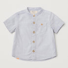 Questa elegante camicia a manica corta è perfetta per i piccoli gentleman! Realizzata in tessuto leggero e traspirante, nella delicata tonalità azzurra, offre comfort e freschezza per le giornate più calde. I bottoni in legno sul davanti aggiungono un tocco di classe, mentre il design semplice e raffinato la rende ideale sia per occasioni speciali che per un look casual di tutti i giorni. Nonostante sia un capo usato, è in ottime condizioni, pronto a valorizzare il guardaroba del tuo piccolo. Un must-have per i bambini che vogliono essere sempre alla moda!