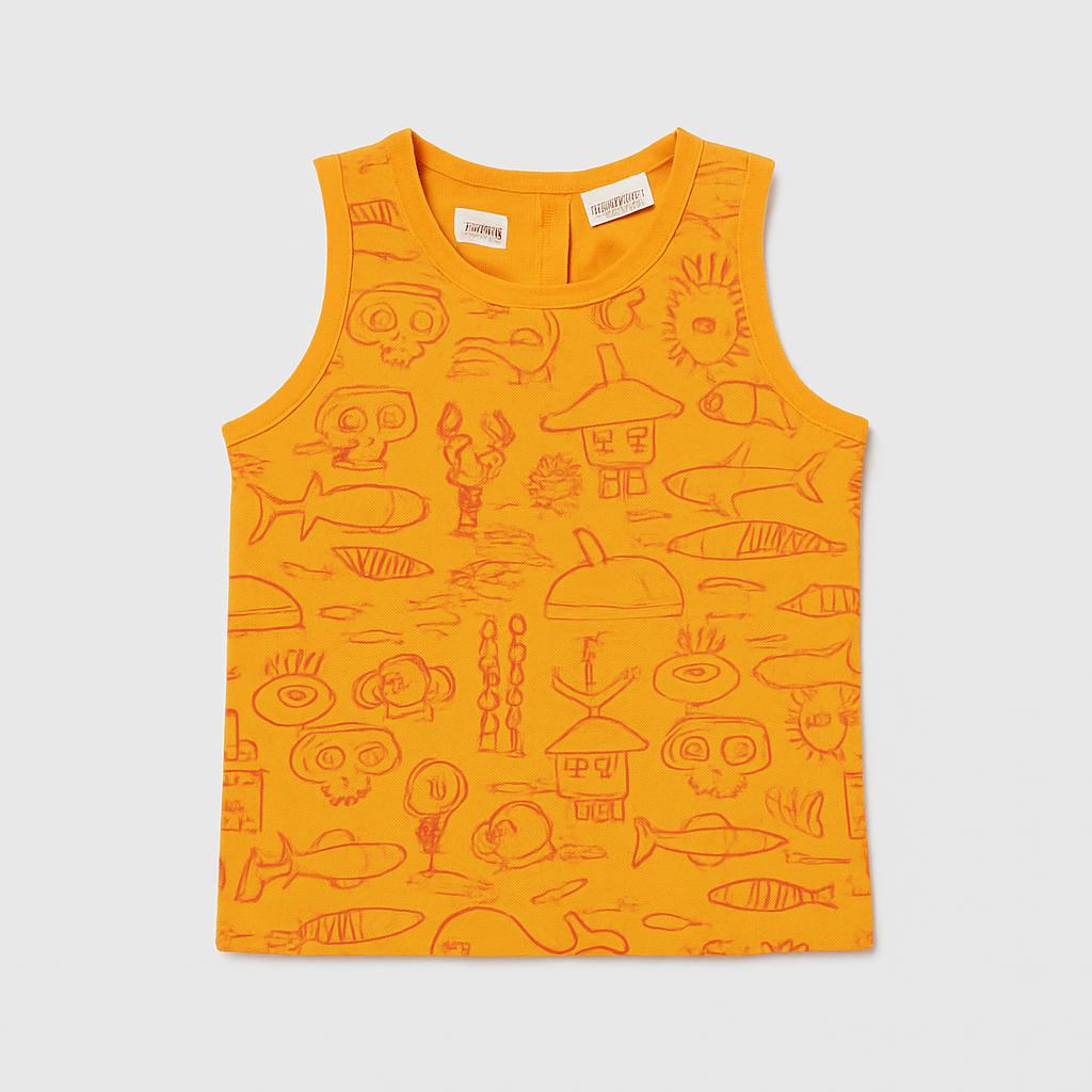 Questa divertente canotta gialla è perfetta per i piccoli esploratori dell'estate! Realizzata in morbido cotone, presenta un vivace motivo di pesci e simpatiche illustrazioni che sicuramente faranno sorridere i bambini. Il colore solare e vivace porta un tocco di allegria in ogni outfit, mentre il taglio senza maniche garantisce freschezza e comfort durante le giornate più calde. Anche se è un capo usato, si presenta in ottime condizioni, pronto per accompagnare le avventure estive della tua piccola. Un capo versatile da abbinare a pantaloni o shorts, ideale per il gioco e il divertimento!