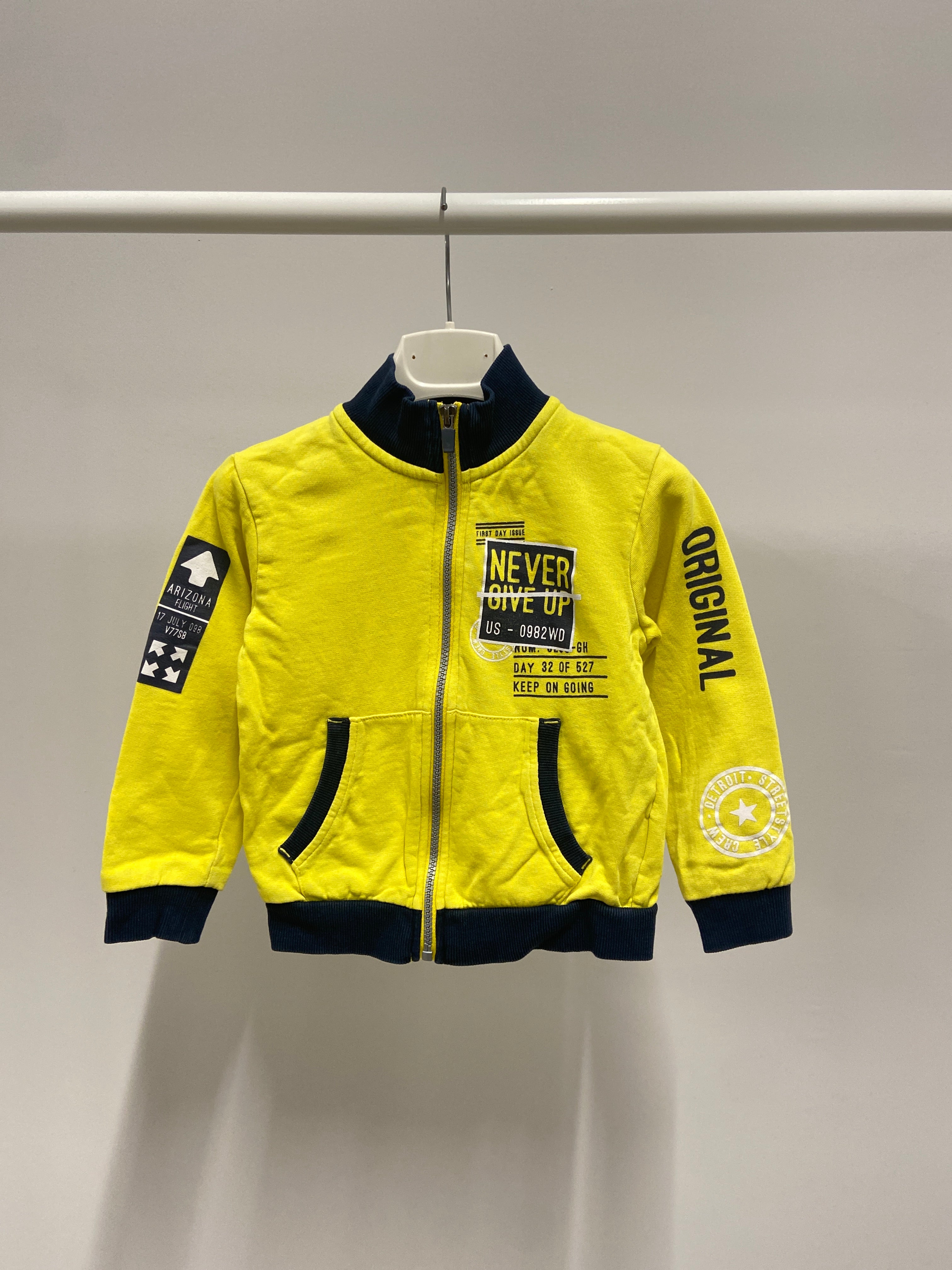 Scopri la vivacità di questa giacca gialla di marca Original! Con il suo caldo tessuto, è perfetta per affrontare le giornate più fresche con stile. Il colore brillante attira subito l'attenzione, mentre le stampe divertenti sul davanti aggiungono un tocco di personalità. Le maniche a contrasto e il colletto alto garantiscono comodità e protezione, ideale per ogni avventura. Questo capo, pur essendo usato, è in ottime condizioni e pronto a far brillare il guardaroba del tuo bambino. Un must-have per piccoli esploratori fashionisti!