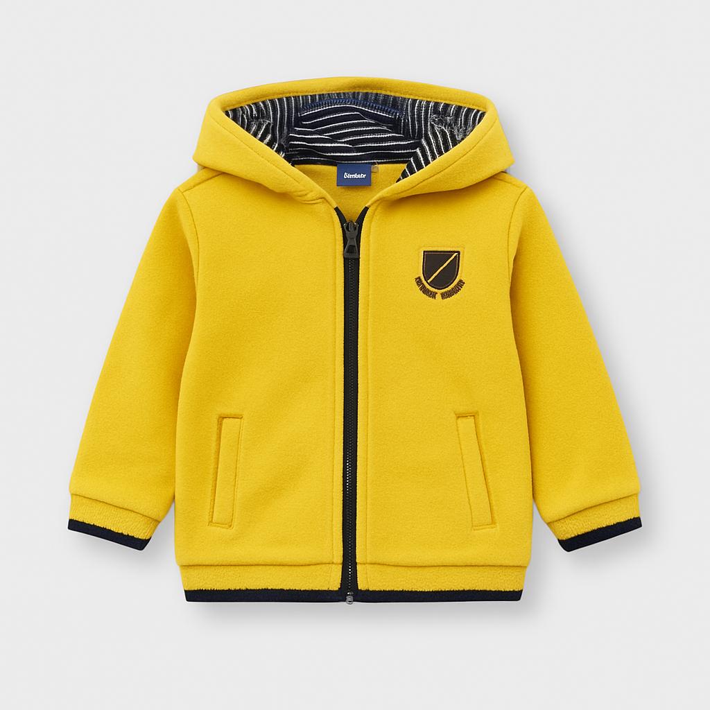 Questo vivace e caldo giacchino giallo sarà l’alleato perfetto per le avventure all’aperto! Realizzato in morbido tessuto, presenta una comoda zip frontale e una praticissima capuccio, ideale per riparare il tuo piccolo dalle fresche giornate. Le finiture a righe interne e il logo ricamato sul petto aggiungono un tocco trendy e sportivo. Nonostante sia un capo usato, è in ottime condizioni e pronto a portare colore e comodità nel guardaroba dei bambini. Un capo versatile che si abbina facilmente a jeans o pantaloni!