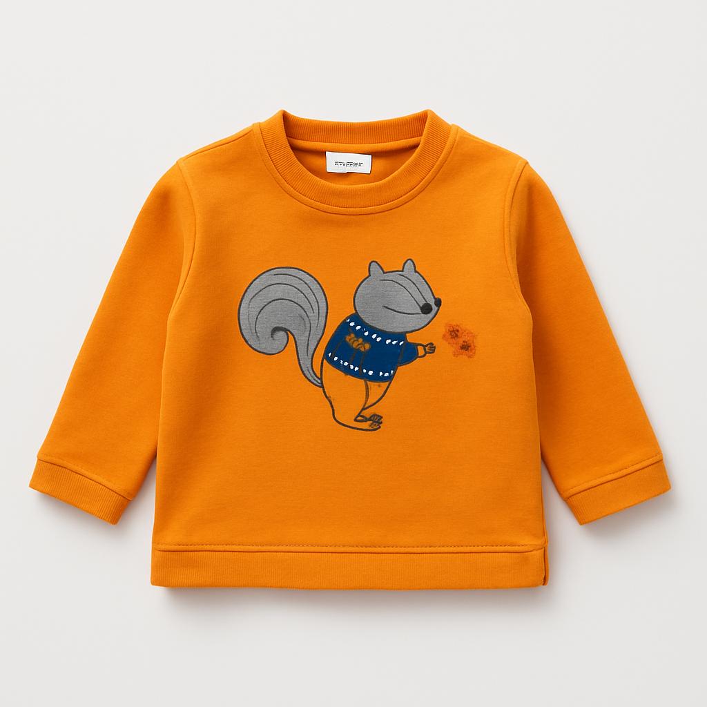 Questo adorabile pullover arancione per bambini è perfetto per aggiungere un tocco di allegria al guardaroba invernale! Con un morbido tessuto che coccola e tiene caldo, presenta un simpatico ricamo di uno scoiattolo che gioca con un maglione blu, regalando un sorriso a chi lo indossa. Le maniche lunghe e il taglio comodo lo rendono ideale per le avventure quotidiane. Nonostante sia un pezzo usato, è in buone condizioni e pronto a diventare il compagno di giochi di un piccolo esploratore. Un must per chi ama la moda divertente e accogliente!