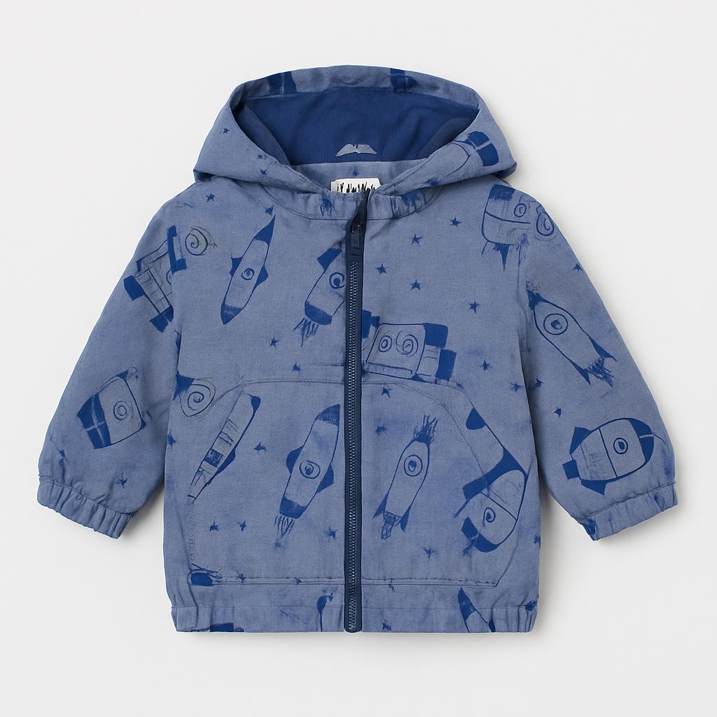 Questo giacchino leggero e avventuroso è perfetto per i piccoli esploratori! Realizzato in un morbido tessuto blu, è decorato con un fantastico motivo di razzi spaziali che stimola la fantasia. Il design con cappuccio protegge dalle fresche brezze, mentre la chiusura fronte con zip rende l'abbigliamento facile da indossare. Le maniche lunghe offrono calore e comfort nelle giornate di gioco all’aperto. Nonostante sia un capo usato, si presenta in ottime condizioni, pronto per accompagnare nuove avventure! Un must per i mini astronauti in cerca di emozioni!
