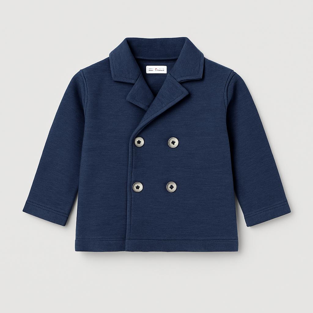 Questo elegante giacchino per bambini è il perfetto mix di stile e comfort! Realizzato in un morbido tessuto blu, presenta una chiusura doppiopetto con bottoni metallici lucenti, che donano un tocco raffinato al look. Con le sue maniche lunghe e il colletto classico, è ideale per le giornate più fresche o per occasioni speciali. Anche se è usato, si trova in ottime condizioni e pronto a diventare il pezzo forte del guardaroba del tuo piccolo! Perfetto per passeggiate nel parco o per una festa, questo giacchino farà certamente colpo.