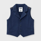 Questo elegante gilet blu scuro è un vero gioiello per il guardaroba dei bambini! Realizzato in morbido tessuto, offre comfort e stile. Il design con colletto a risvolto e pulsanti frontali aggiunge un tocco di classe, rendendolo perfetto per occasioni speciali o semplici uscite. Le tasche frontali sono pratiche per riporre piccoli tesori. Nonostante sia usato, si presenta in ottime condizioni, pronto a vestire il tuo piccolo in modo chic. Un indispensabile per ogni piccola fashionista!