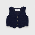 Questo elegante gilet navy è un'aggiunta fantastica al guardaroba del tuo piccolo! Realizzato in morbido cotone, presenta dettagli raffinati come i tre bottoni frontali e una fodera vivace. Perfetto da abbinare a una camicia per occasioni speciali o per dare un tocco sofisticato a un look casual. Nonostante sia usato, si trova in ottime condizioni, pronto a rendere ogni outfit ancora più chic. Un must-have per i piccoli gentiluomini!