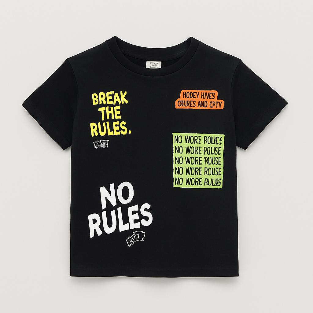 Questa vivace t-shirt nera è perfetta per i piccoli ribelli in erba! Con il suo messaggio audace "BREAK THE RULES" e accattivanti scritte colorate, cattura subito l'attenzione. Realizzata in morbido cotone, offre comfort e libertà di movimento, ideale per ogni avventura. Le maniche corte e il taglio trendy rendono questo capo versatile, perfetto per giochi all'aperto o giornate casual. Nonostante sia usata, è in buone condizioni e pronta per essere indossata da un futuro leader! Un must-have per chi ama distinguersi con stile!