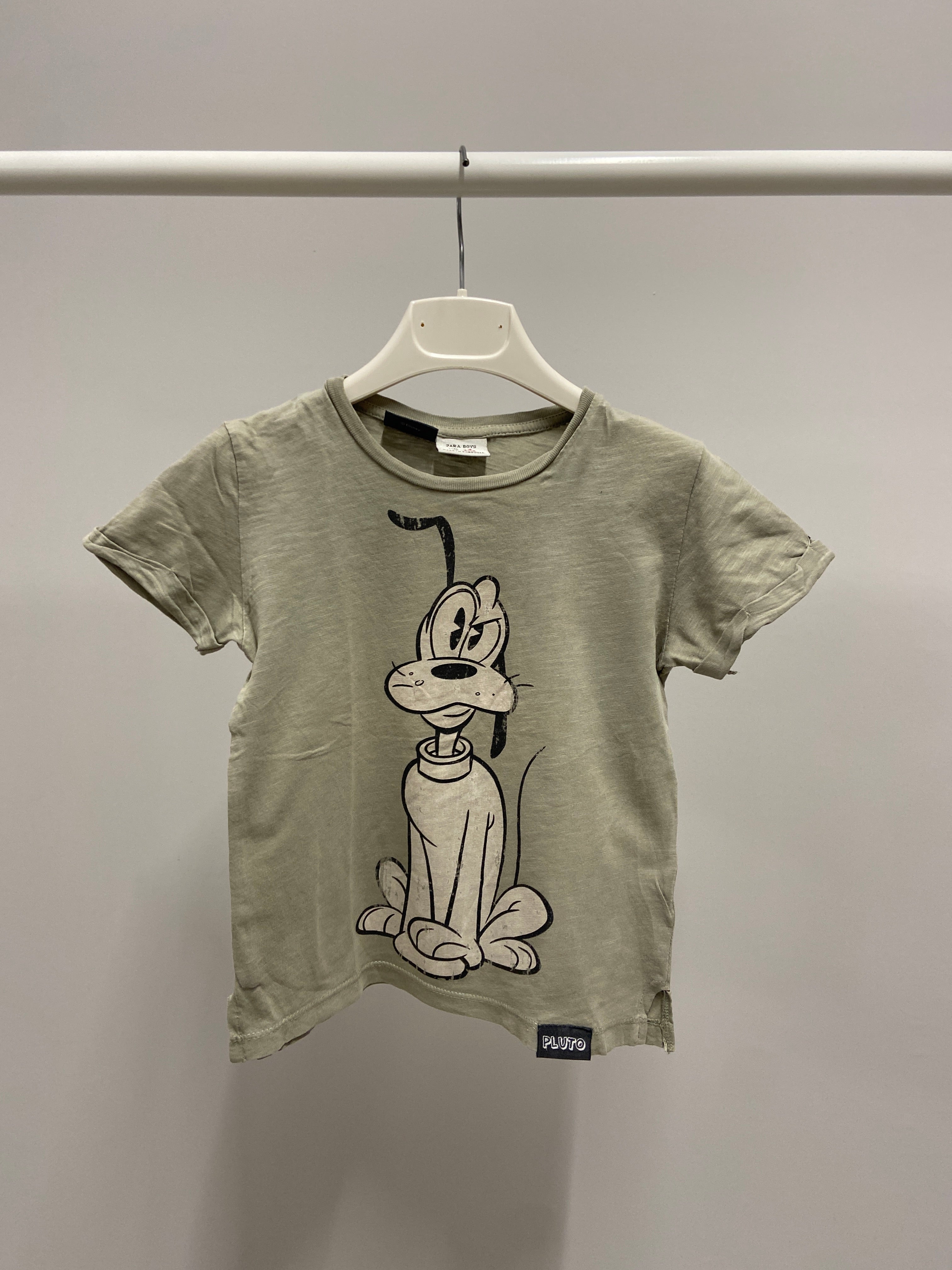 Questo adorabile t-shirt di colore verde oliva è un must per i piccoli fan dei cartoni animati! Con una divertente stampa di Pluto che sorride, questa maglietta porta un pizzico di magia e allegria nel guardaroba. Realizzata in morbido cotone, è perfetta per garantire comfort durante le avventure quotidiane. Le maniche corte e il taglio rilassato la rendono ideale per il gioco e il relax. Nonostante sia un capo usato, si presenta in ottime condizioni, pronta per essere indossata da un futuro amante dei classici Disney!