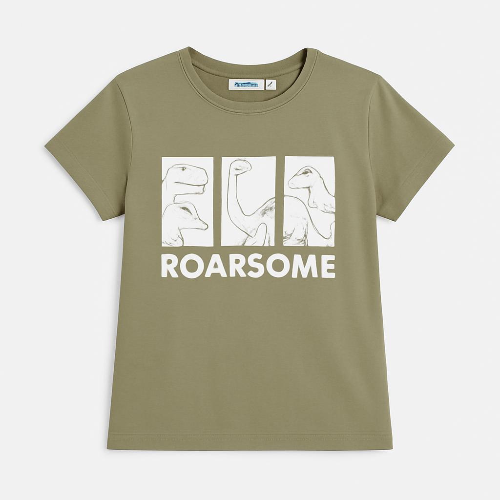 Scopri questa adorabile t-shirt in verde salvia, perfetta per i piccoli amanti dei dinosauri! Con una stampa “ROARSOME” che cattura l’attenzione, il design presenta simpatici dinosauri che renderanno felice ogni bambino. Realizzata in cotone morbido, offre comfort durante le avventure quotidiane. Le maniche corte e il taglio casual la rendono ideale per esplorazioni all'aperto o giornate di gioco. Nonostante sia un capo usato, è in ottime condizioni e pronto per essere indossato da un piccolo esploratore! Una scelta fantastica per un look divertente e spensierato!